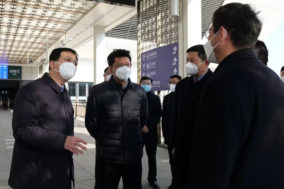 在东部枢纽站前广场,王进健看望慰问值班值守人员,并检查了车站运营秩序和安全生产工作,详细询问客流量、运力保障、疫情防控等情况。他叮嘱相关单位和属地,要时刻绷紧安全生产这根弦,全面排查整治风险隐患,完善应急预案,配强一线力量,确保群众平安顺畅出行。