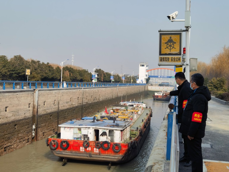 春运首日,淮安朱码船闸船舶流量明显上升。该闸加强辖区航闸船舶流量监测,加大全域广播宣传提醒力度,开辟水上“绿色通道”,强化诚信春运宣传,科学执行疫情防控优化措施和“乙类乙管”各项措施,成立运行一线关键岗位人员轮岗备岗预备队,切实保障春运期间辖区水上运输通道不掉链。