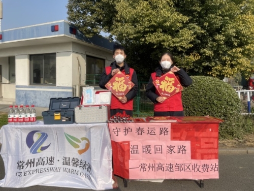 常州高速公路部门启动“守护春运路,温暖回家路”春运暖程志愿者服务活动,在各收费站为司乘人员送“福”字,提供热水、姜茶、口罩、地图、修理工具、推车、指路等便民服务,提醒大家在特殊时期做好个人防护和安全驾驶。