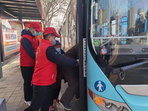 徐州沛县公交公司组织开展党员服务志愿者活动,到公交站台扶老携幼、接受乘客咨询、检查站台设施,为广大群众的安全出行保驾护航。