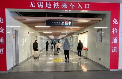 无锡地铁火车站春运首日重启“免检通道”,即无锡站北广场出站的旅客们乘坐地铁时无需再次安检,可直接通过“免检通道”完成铁地换乘,大大缩短了携带大件行李来锡旅客的换乘时间。现场参与春联(福字)书写、知识问答、才艺互动等活动的乘客还可再免费领取一份新年小礼品。