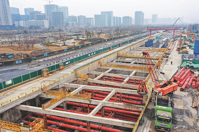 2月8日,南京地铁11号线一期已经开工的17座车站已全部复工。图为繁忙的绿水湾站施工现场。 本报记者 赵亚玲 摄