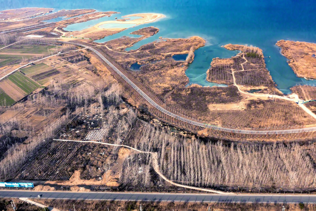 2022年12月29日,江苏省第一大人工水库——连云港市东海县石梁河水库,沿湖湿地形状各异、大小不一,滩涂深沉的色调和蓝色的湖水,...