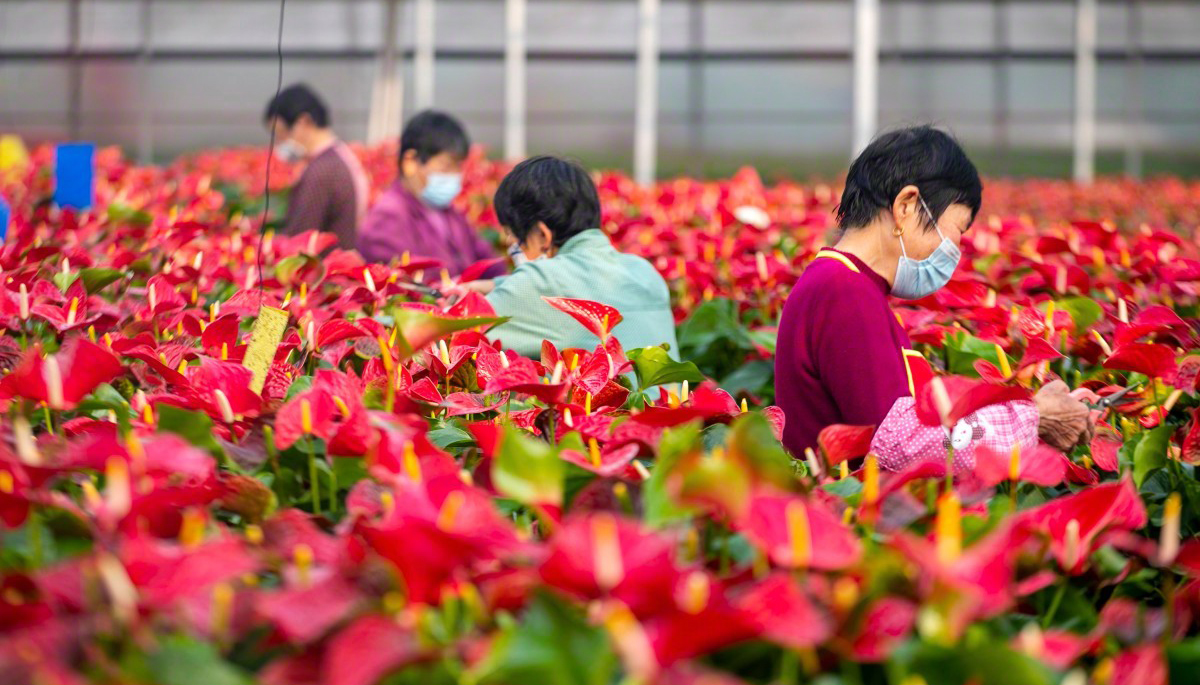 2023年1月5日,工人在泰州市现代园艺科技产业示范园花卉生产基地5G智能电气化温室科技大棚内忙碌。据了解,该基地占地21万平方米,采用5G全场景智能化分布式数字农业应用系统,建设了23个5G智能电气化温室科技大棚,一年能减少1.44万吨碳...